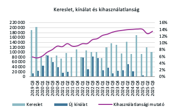 A nettó kereslet (szerződéshosszabbítás és saját tulajdonba vétel nélküli tranzakció) ezen időszakban 60.615 m2-t tett ki, amely 36%-os növekedést jelent 2024 harmadik negyedévéhez viszonyítva.